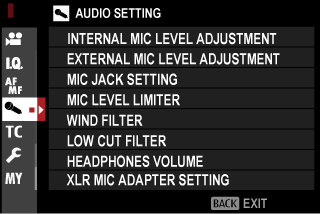 | [AUTO] | The camera adjusts the recording level automatically. |