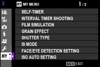 Press the focus stick (focus lever) up or down to highlight [ADD ITEMS] and press [MENU/OK]. Options that can be added to “my menu” are highlighted in blue.