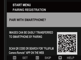 Press MENU/OK to pair the camera with a smartphone or tablet running the FUJIFILM Camera Remote app.
