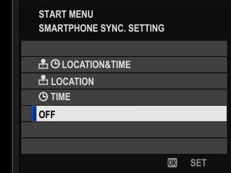Press MENU/OK to set the camera clock to the time reported by the smartphone or tablet and exit to shooting mode.