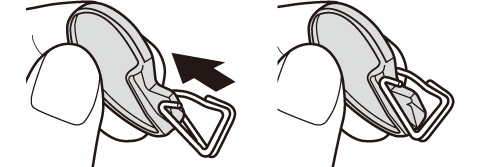 Use the clip attaching tool to open a strap clip, making sure that the tool and clip are in the orientations shown.