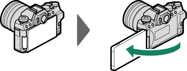 液晶モニターを180°回転すると、画像が鏡像表示になります。自分撮りをするときに鏡を見るようなイメージで撮影できます。