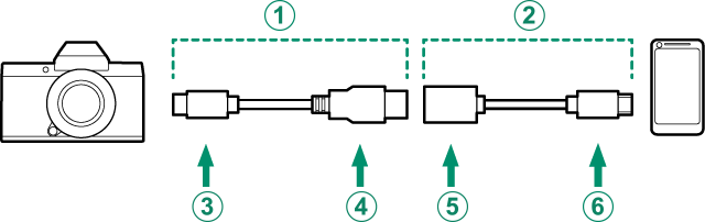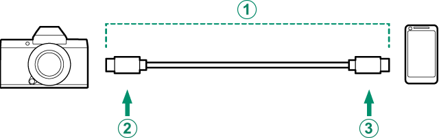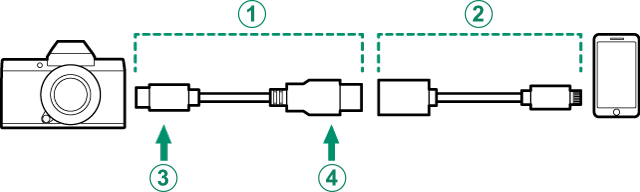 USB OTG対応ケーブルでカメラとスマートフォンを接続します。