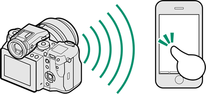将“FUJIFILM Camera Remote”应用程序安装至您的智能手机可浏览相机上的图像,下载所选图像,遥控相机,或者将位置数据复制到相机中。一旦安装好该应用程序,请使用相机菜单中的 A拍摄设置 > 无线通信 或 C播放菜单 > 无线通信 选项进行连接。