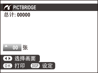 在 PictBridge 显示中,按下 DISP/BACK 打开 PictBridge 菜单。